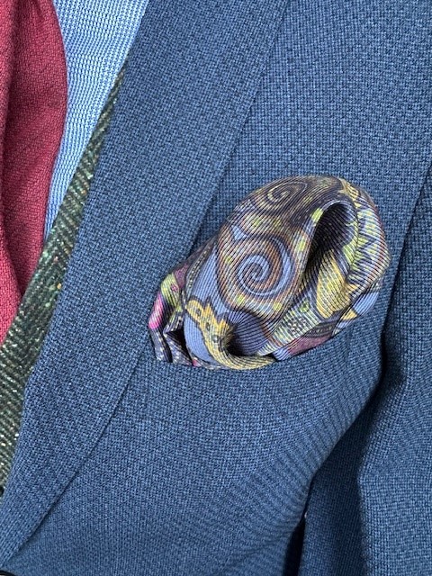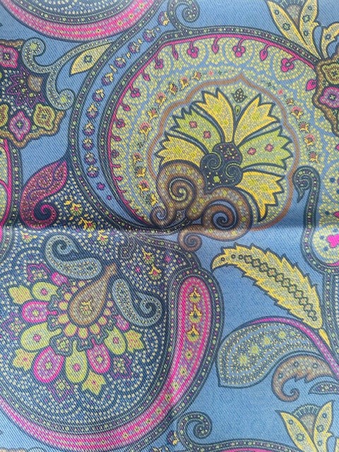 Einstecktuch 100% Silk double printed Paisley in blue-fuchsia