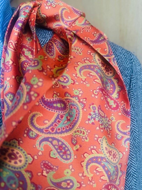 100% Seide 18 MM bedruckt Gumtwill finishing ca. 16 x 138cm gearbeitet als Schlauchschal, spitz zulaufend handgenäht in Deutschland Ascot Webetikett
